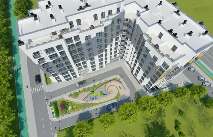 It is a complex built in a new area, with new infrastructure, where, according to the general urban plan, social facilities are planned nearby: school, kindergarten, youth center, commercial spaces.